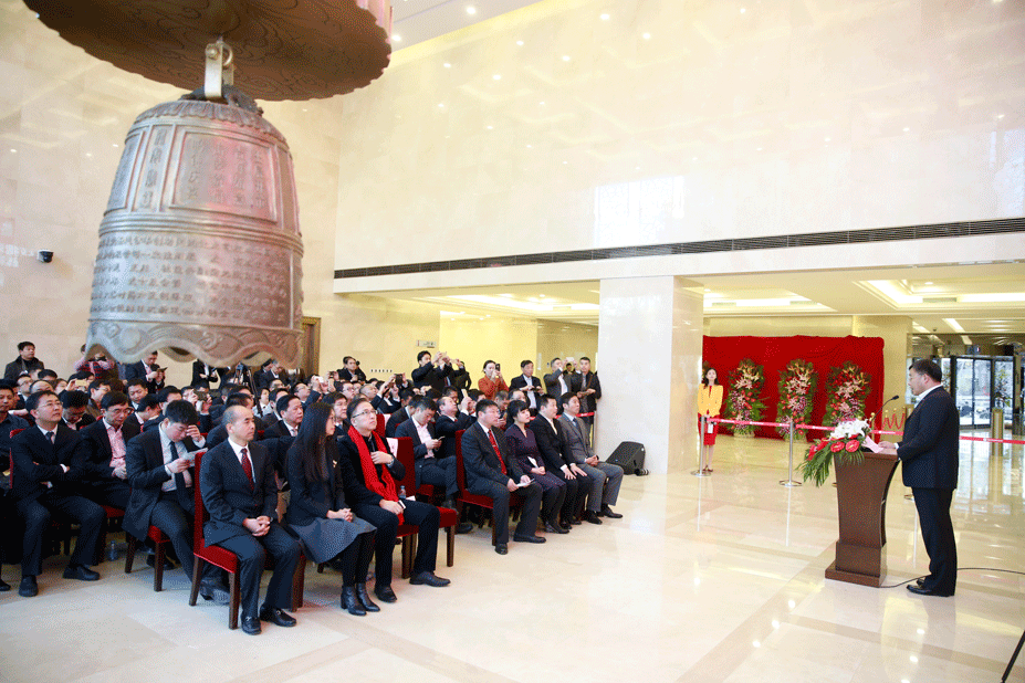 下午3點(diǎn),“興達(dá)泡塑”等16家企業(yè)新三板掛牌儀式正式開始。“興達(dá)泡塑”公司董事長華嘯威作為16家新掛牌上市公司嘉賓代表發(fā)言致辭,并敲響了開市寶鐘。