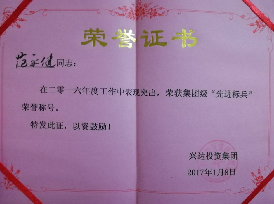 樹立榜樣、學(xué)習(xí)先進(jìn)、弘揚(yáng)正氣,為興達(dá)發(fā)展作貢獻(xiàn),范永健同志用行動(dòng)在踐行,“興達(dá)榜樣”既是個(gè)人的光榮,更是我們興達(dá)人努力的方向!